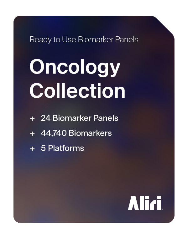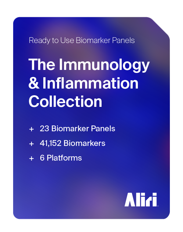 To solve this problem, Aliri has translated our years of biomarker expertise into 37 study-ready panels featuring over 48,000 biomarkers. Leveraging multiple advanced analytical platforms, we enable the detection of anything from a single biomarker to several hundred markers, across tissue sections (imaging/profiling), tissue homogenates, cell suspensions, and biological fluids.